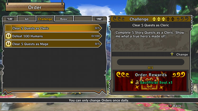 Before completing them, players can use the Change option to change up to 1 Challenge Order for another.