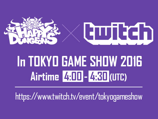 Xbox OneSeptember 9, 2016Information Happy Dungeons on Twtich booth in Tokyo Game Show 2016Period : September 16 , 2016 Happy Dungeons will be introduced on Twitch booth stage event in Tokyo Game Show 2016 and Twtich official live streaming!… More