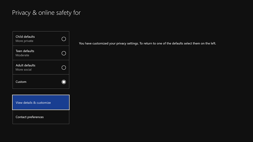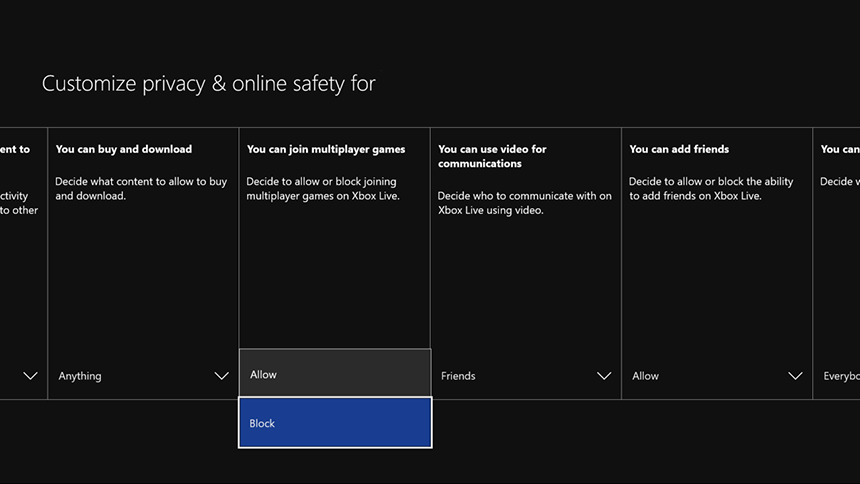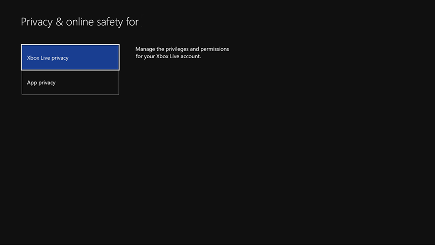 1.Back Xbox home and go “Settngs”. Then select “Account” -> “Privacy & online safety”