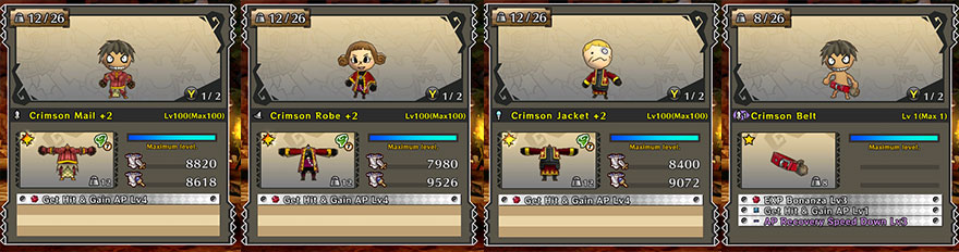 *Crimson Mail -1, Crimson Jacket -1 and Crimson Robe -1 do not possess any special effects before being Awakened.